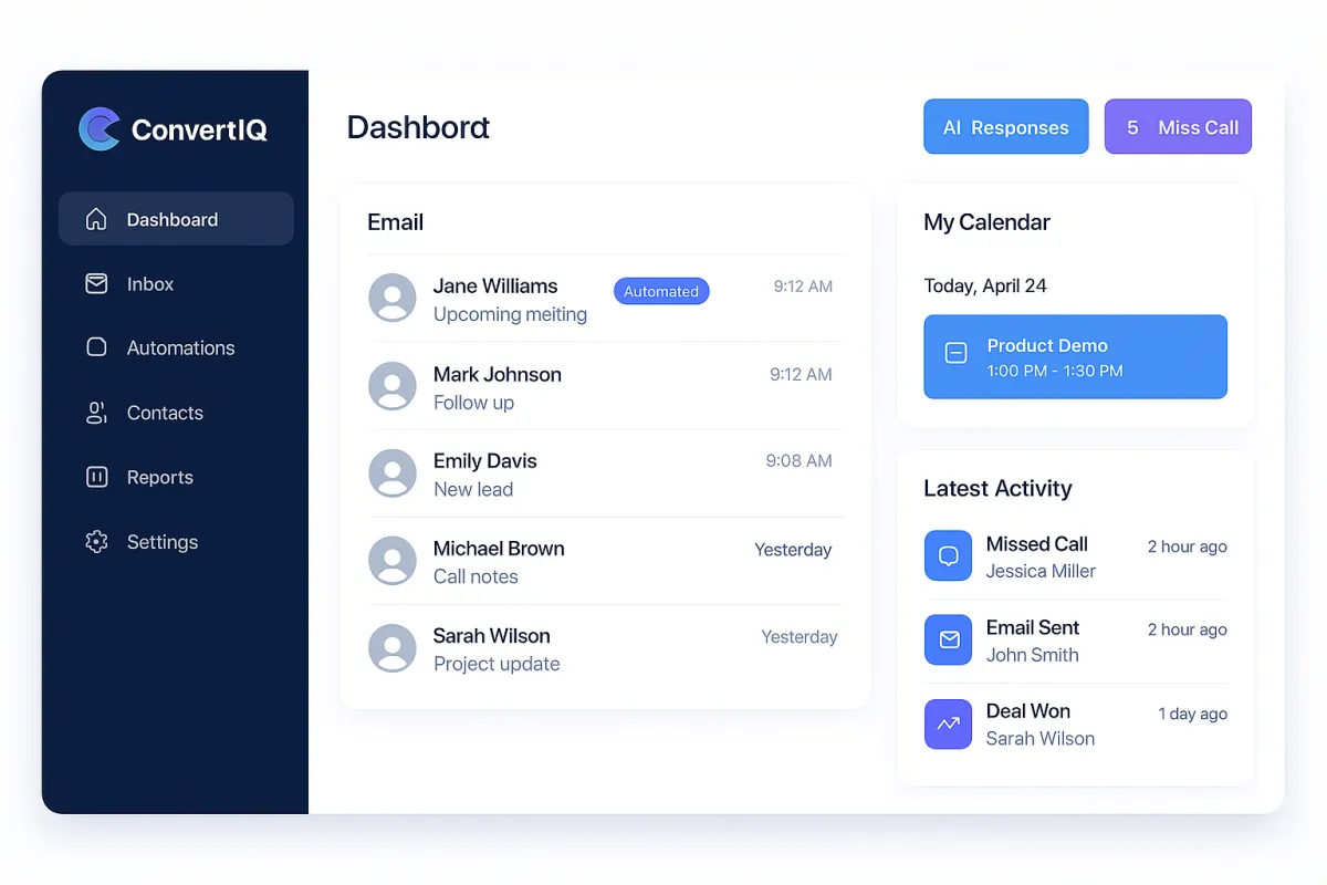 ConvertIQ Systems helped us automate follow-ups and booking. We stopped missing calls and started closing more jobs without hiring extra staff.